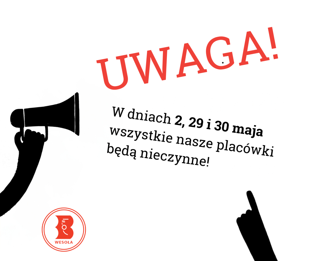 UWAGA! W związku ze szkoleniami całego zespołu Biblioteka Główna będzie nieczynna 16 kwietnia, a Filia Zielona i Wola Grzybowska – 17 kwietnia. Przepraszamy za niedogodności.