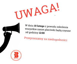 10 lutego 09/02/2026 Drodzy Czytelnicy,W dniu 10 lutego z powodu szkolenia nasze placówki będą czynne od godziny 12:00. Przepraszamy za niedogodności. Czytaj więcej »
